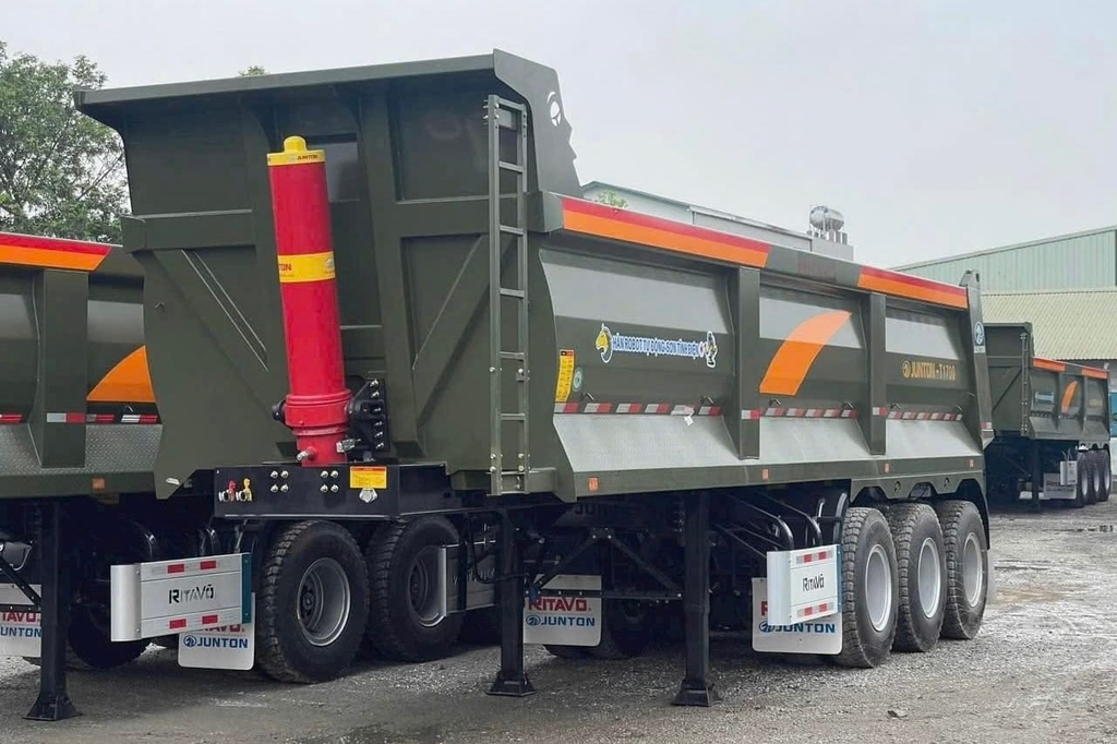 Sơ mi rơ mooc ben Junton nổi bật với thiết kế thông minh, tối ưu hóa hiệu quả vận chuyển. Thùng ben hình chữ U, kết hợp vát nhẹ ở đáy, ngăn ngừa vật liệu bám dính, giúp quá trình đổ hàng diễn ra nhanh chóng và hiệu quả hơn. Để tăng cường độ bền và khả năng chịu tải, mooc ben Juton trang bị 3 đố dọc chắc chắn dọc theo thành thùng, chống phình và biến dạng khi chở nặng, đảm bảo việc chuyển tải luôn dễ dàng và thuận lợi.