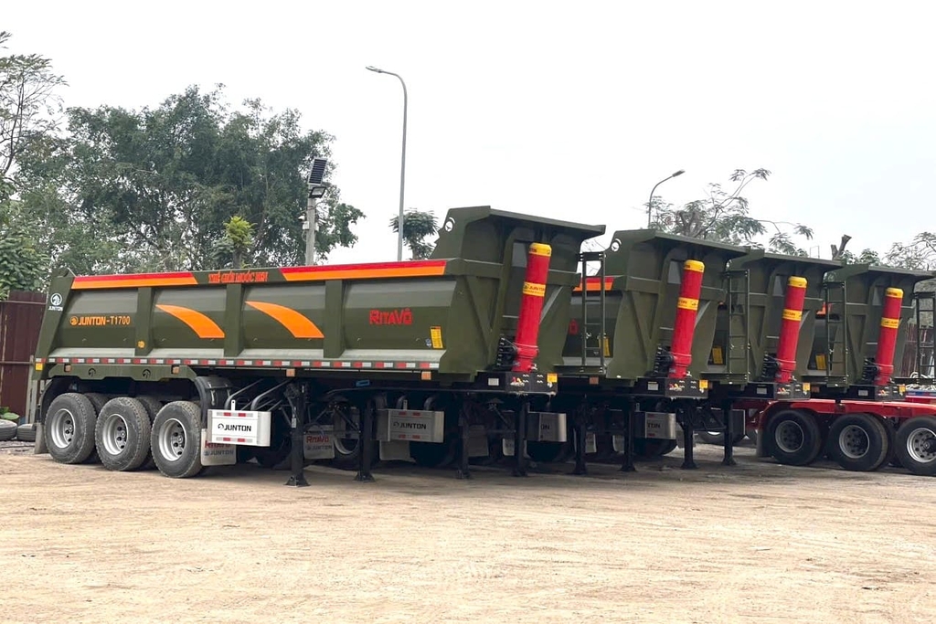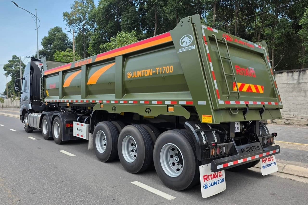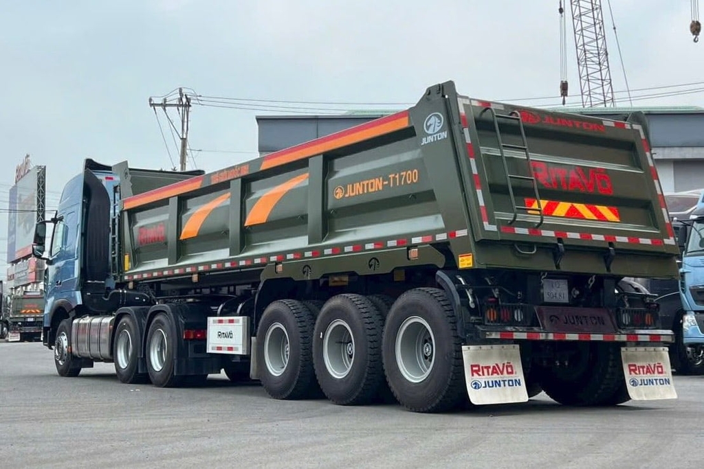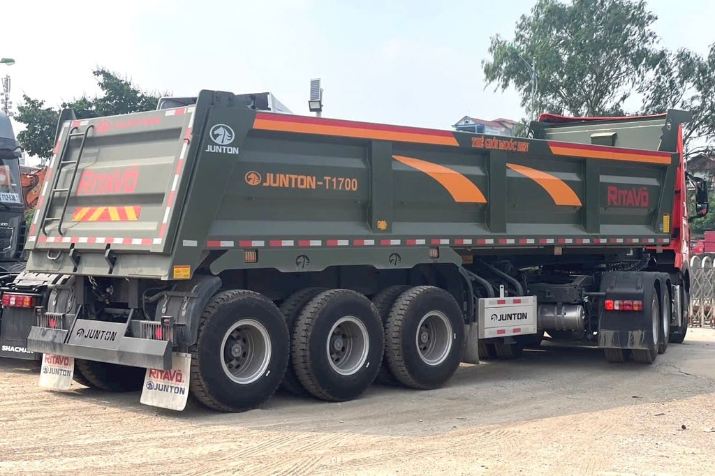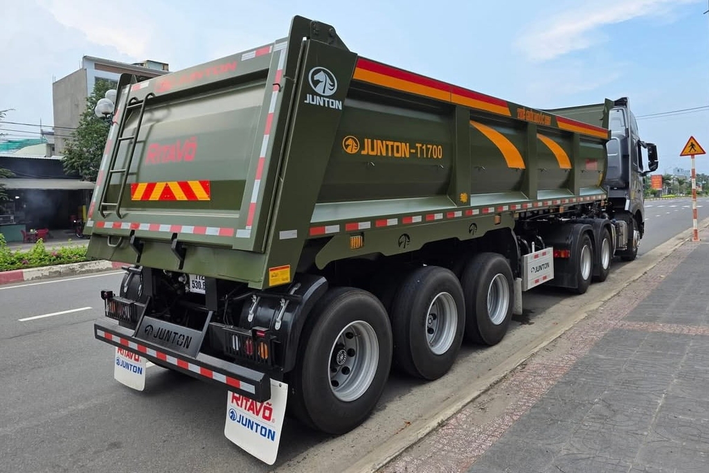 Với kích thước bao 9.220 x 2.500 x 3.500 mm và kích thước lòng thùng 8.660 x 2.300 x 1.280 mm, mooc ben Junton sở hữu dung tích thùng ben nguyên bản ấn tượng khoảng 26 khối.