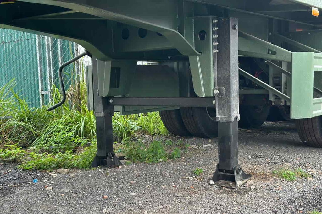 Để đảm bảo ổn định toàn bộ cấu trúc sơ mi rơ moóc khi tách rời khỏi xe đầu kéo chính là hệ thống chân chống Fuwa. Với khả năng chịu tải trọng động lên đến 28 tấn và tải trọng tĩnh đạt mức 80 tấn, mooc Thaco sử dụng linh kiện chính hãng giúp ngăn chặn hoàn toàn hiện tượng áp lực quá mức lên khung gầm mà còn đảm bảo an toàn tuyệt đối trong quá trình bốc dỡ hàng hóa nặng.