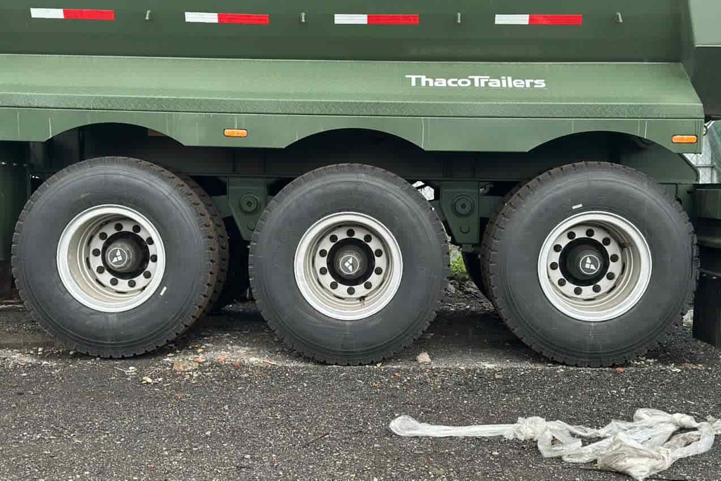 Rơ mooc ben Thaco được trang bị hệ thống lốp 12.00R20 đến từ thương hiệu DRC, với kết cấu bố thép siêu bền mang lại khả năng chịu tải cực tốt, giúp xe vận hành ổn định ngay cả trong điều kiện tải trọng khắc nghiệt nhất. Thiết kế gai lốp chuyên dụng tăng độ bám đường trên các địa hình trơn trượt hay công trường lầy lội mà còn có khả năng tản nhiệt nhanh, giảm thiểu tối đa tình trạng nổ lốp khi chạy đường dài.