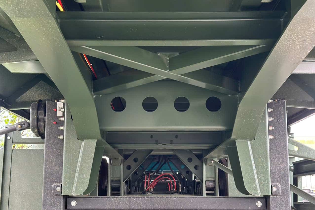 Hệ thống sắt xi cũng được chế tạo từ thép cường độ cao ATOS 80 với khả năng chống vặn xoắn tuyệt vời, giúp mooc luôn giữ được sự cân bằng và ổn định ngay cả khi vận hành trên địa hình nghiêng lún hay trong những tình huống vào cua gấp. Độ cứng cáp của khung xương và tính đàn hồi của sắt xi không chỉ giúp bảo vệ toàn diện kết cấu rơ mooc mà còn mang lại sự an tâm tuyệt đối trong suốt quá trình vận chuyển.