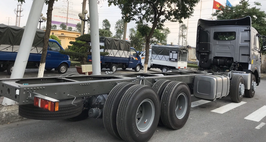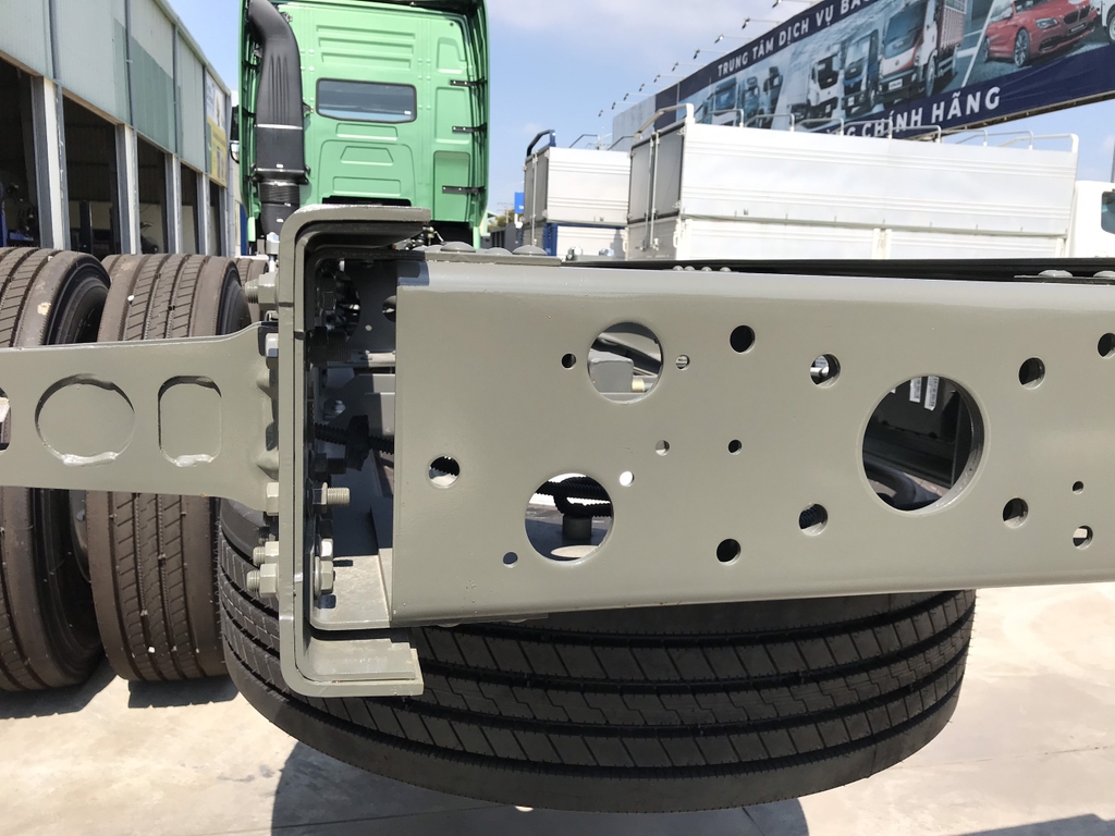 Xe tải thùng Howo 4 chân nổi bật với kết cấu tổng thể vững chắc, đặc biệt là hệ thống chassis lồng 2 lớp, thiết kế này đảm bảo khả năng chịu tải vượt trội, giúp xe vận chuyển hàng hóa nặng một cách an toàn và ổn định trên mọi địa hình. Khung gầm chắc chắn mang lại sự an tâm cho người lái, đồng thời tăng tuổi thọ cho xe.