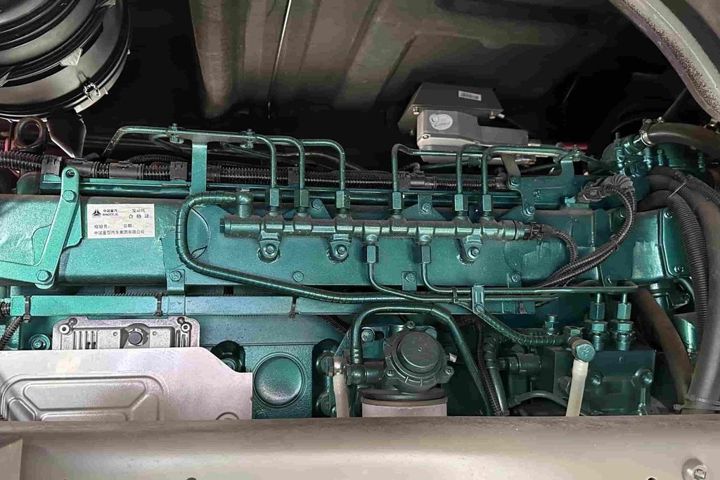 Xe ben Howo 3 chân V7G thùng vuông được trang bị động cơ D10.38-50 Euro 5 với công nghệ phun nhiên liệu điện tử common rail và điều khiển cơ khí điện tử ECU tiên tiến, giúp tối ưu hóa hiệu suất đốt cháy, tiết kiệm nhiên liệu lên đến 10% so với các dòng động cơ Euro 4. Nhờ đó, xe vận hành mạnh mẽ trên mọi địa hình, kể cả khi chở quá khổ quá tải và trên những đoạn đường khó đi.