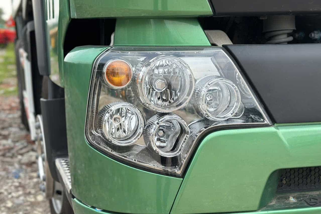 Cụm đèn pha của xe Howo 3 chân được thiết kế với kích thước lớn và kiểu dáng sắc nét, không chỉ tăng tính thẩm mỹ mà còn mang lại hiệu quả vượt trội. Các đèn được tích hợp đầy đủ bao gồm: đèn pha chính, đèn xi-nhan và đèn cảnh báo. Sự kết hợp này đảm bảo khả năng chiếu sáng vượt trội, giúp người lái có tầm nhìn rõ ràng và an tâm di chuyển trong mọi điều kiện thời tiết, từ sương mù dày đặc đến đêm tối, cũng như trên các địa hình phức tạp.