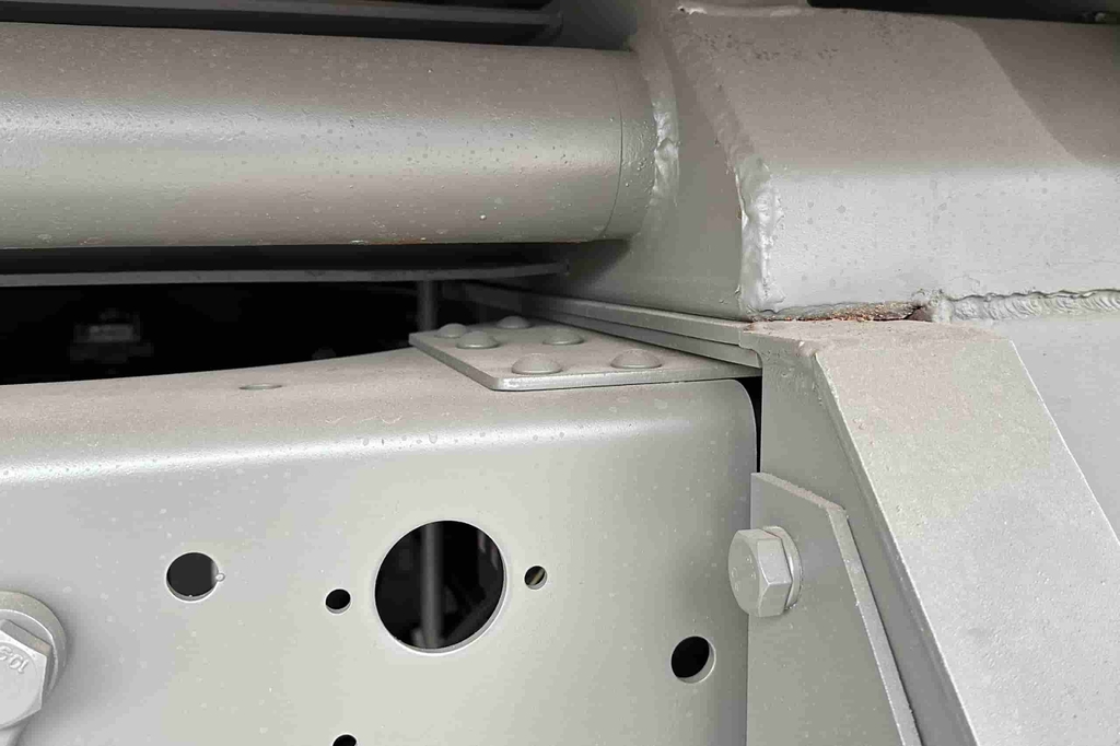 Khung xe song song dạng nghiêng, tiết diện hình chữ U300 x 80 x 8 (mm) và các khung gia cường, các khớp ghép nối được tán rivê nguội.