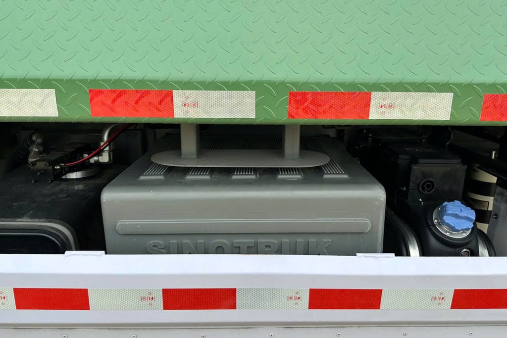Một điểm nâng cấp đáng chú ý so với các mẫu Howo 371 trước đây là phiên bản mới được trang bị cabin V7G nâng hạ bằng điện. Tính năng này giúp người dùng dễ dàng nâng hạ cabin chỉ bằng một thao tác đơn giản, thay vì phải kích bằng tay như trước, tiết kiệm đáng kể thời gian và công sức trong quá trình bảo dưỡng và kiểm tra động cơ.