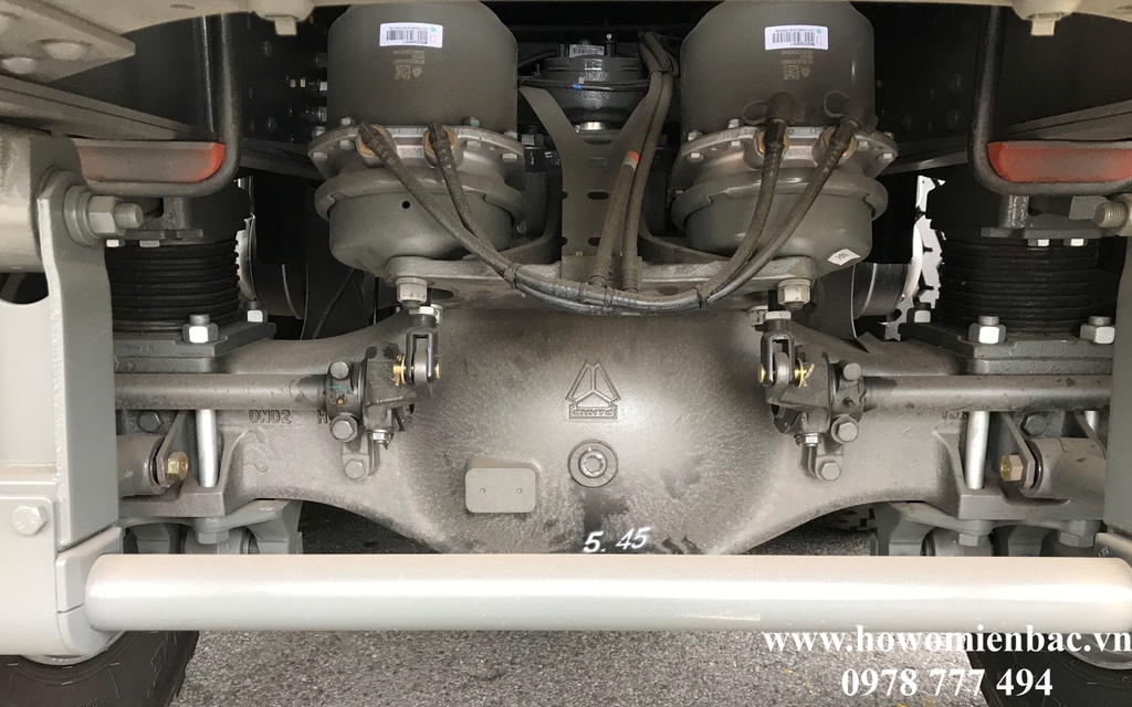 Xe ben Howo 4 chân thùng vuông được trang bị cầu đúc AC với khả năng chịu tải lên tới 16 tấn. Cầu xe có thêm thanh giằng, giúp giữ cho cầu luôn ổn định khi di chuyển trên các địa hình gồ ghề. Với tỷ số truyền 5.45, xe vận hành mạnh mẽ, ổn định và đặc biệt hiệu quả khi di chuyển trên các cung đường khó khăn hoặc khi chở tải nặng.