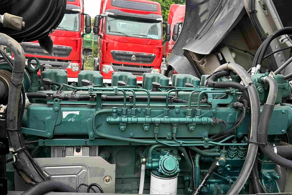 Xe ben Howo 4 chân thùng vuông được trang bị động cơ D10.38-50, 4 kỳ 6 xi lanh thẳng hàng (380HP), và được trang bị tiêu chuẩn khí thải Euro 5 tiết kiệm bảo vệ môi trường. Động cơ này được trang bị hệ thống phun nhiên liệu điện tử Common Rail, giúp động cơ vận hành mạnh mẽ và êm ái hơn, mang lại cho người dùng trải nghiệm lái xe an toàn và êm ái trên mọi cung đường