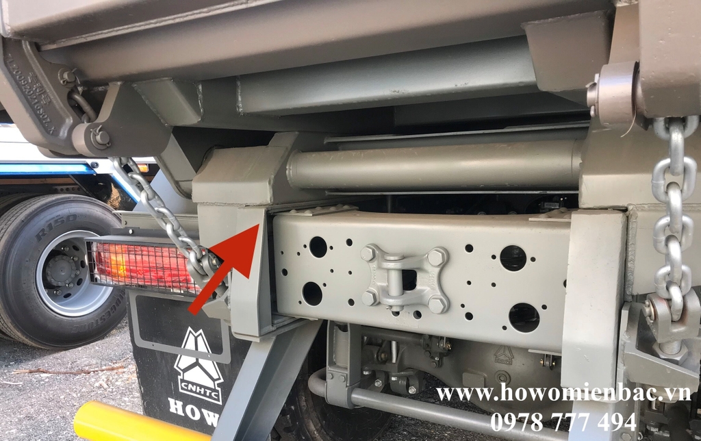 Xe ben Howo 4 chân thùng vuông nổi bật với hệ thống khung sắt-xi 2 lớp dày 8+8 mm, được thiết kế xuyên suốt từ đầu đến cuối xe. Cấu trúc này không chỉ mang lại vẻ ngoài mạnh mẽ, mà còn là biểu tượng của độ bền và khả năng chịu tải vượt trội.