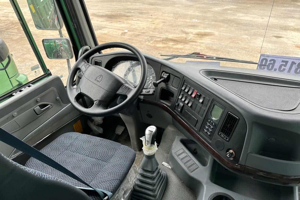 Nội thất xe ben Howo V7G 4 chân thùng vuông được thiết kế hiện đại, sang trọng và đầy đủ tiện nghi, mang đến sự thoải mái tối đa cho người lái. Khoang cabin được trang bị ghế hơi và giường nằm, giúp tài xế thư giãn trong những chuyến đi dài. Các tiện ích như radio và ngăn để đồ rộng rãi được bố trí hợp lý, giúp mọi thứ luôn trong tầm tay. Nhờ vậy, người lái luôn cảm thấy tiện nghi và thoải mái trong suốt hành trình.