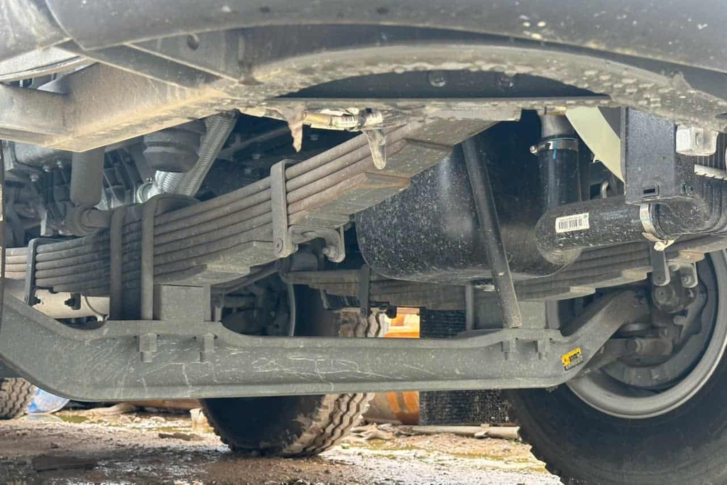 Hệ thống treo sau của xe ben Howo 4 chân 2025 được trang bị 10 lá nhíp bán elip ở phía sau. Hệ thống sử dụng quang đôi bắt lên phía trên để gia cố, giúp tăng cường độ chắc chắn và khả năng chịu tải. Nhờ vậy, ngay cả khi vận chuyển hàng hóa nặng, hệ thống nhíp vẫn hoạt động ổn định, không xảy ra hiện tượng gãy nhíp, đảm bảo an toàn và hiệu suất vận hành tối ưu.