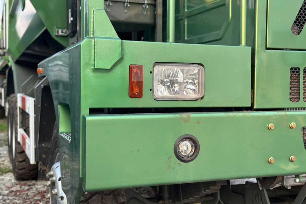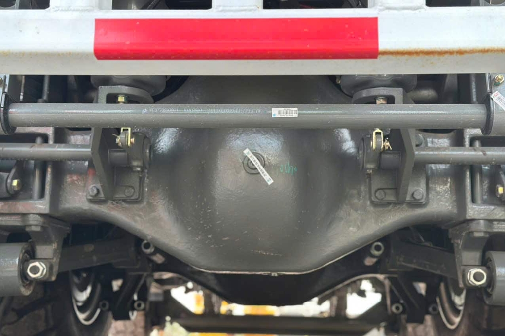 Hệ thống cầu xe được trang bị cầu trước VGK có tải trọng 20 tấn, giúp phân bổ trọng lượng đồng đều, giữ xe cân bằng và ổn định trên đường. Cầu sau chuyên dụng MCK 45 có tải trọng lên tới 45 tấn, cho phép xe vận chuyển tải trọng lớn một cách an toàn và bền bỉ. Với tỷ số truyền cầu lớn 10.47, xe tạo ra mô-men xoắn cực đại tại bánh xe, mang lại khả năng leo dốc và vượt địa hình vượt trội. Nhờ vậy, xe có thể dễ dàng di chuyển qua những cung đường khó khăn như dốc đá hoặc lầy lội mà không gặp trở ngại.
