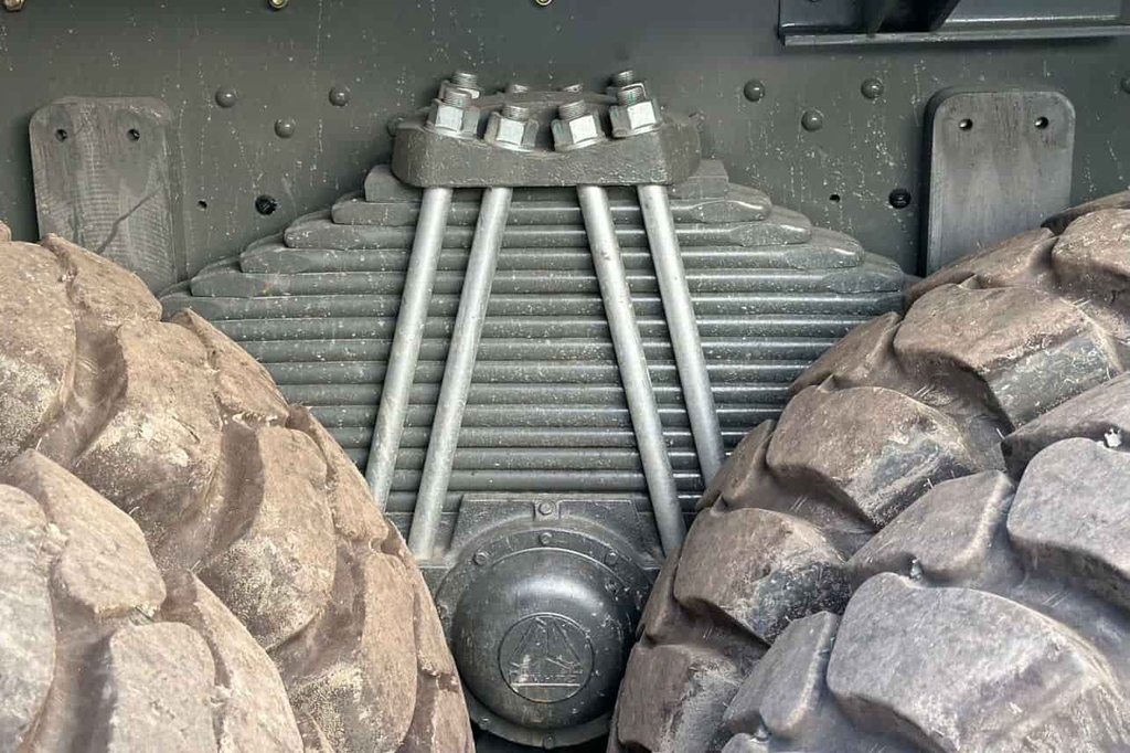 Hệ thống treo sau trang bị 15 lá nhíp sử dụng kết cấu quang đôi, giúp phân bổ lực đều hơn lên toàn bộ hệ thống. Điều này làm tăng độ bền, giảm thiểu nguy cơ gãy nhíp và đảm bảo xe hoạt động ổn định trên những cung đường gồ ghề