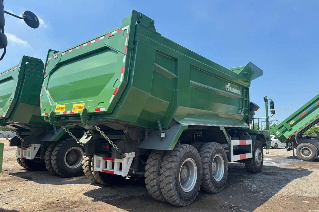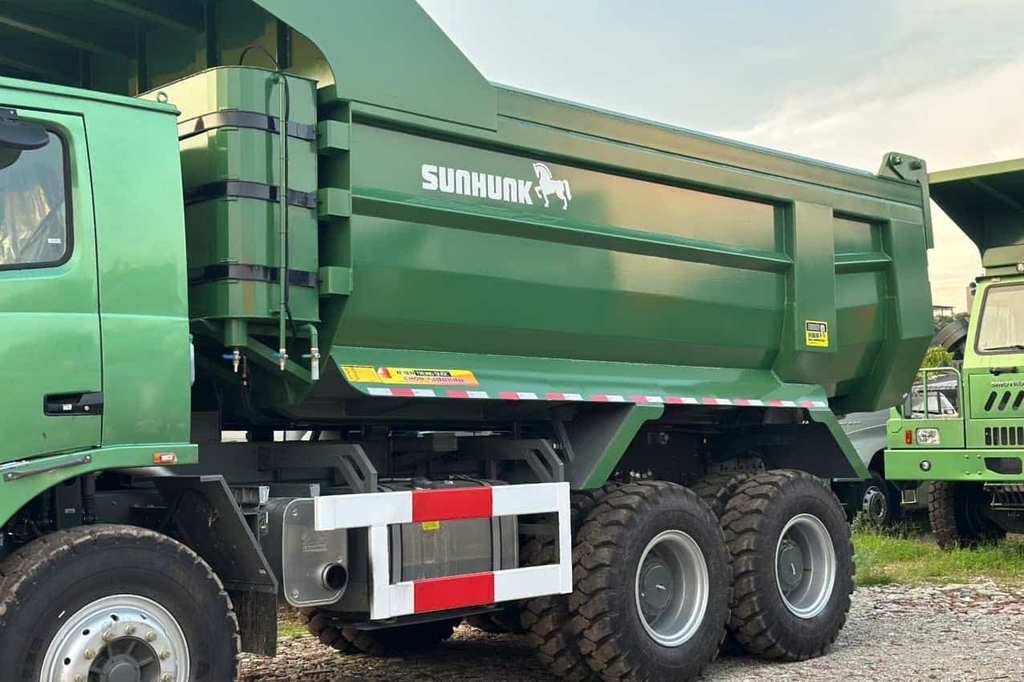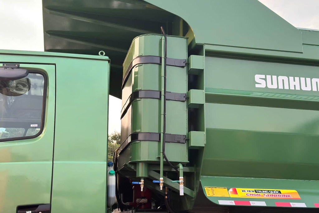 Thùng ben SUNHUNK có kết cấu tăng cứng bên thành thùng được làm từ thép hợp kim siêu cường chống mài mòn han gỉ với độ dày thành và đáy lớn ( thành 12mm, đáy 20mm ). Thùng được thiết kế dạng đúc (thùng U) giúp việc đổ hàng nhanh chóng và dễ dàng, đồng thời chịu được sự va đập của các vật liệu nặng như đá tảng.