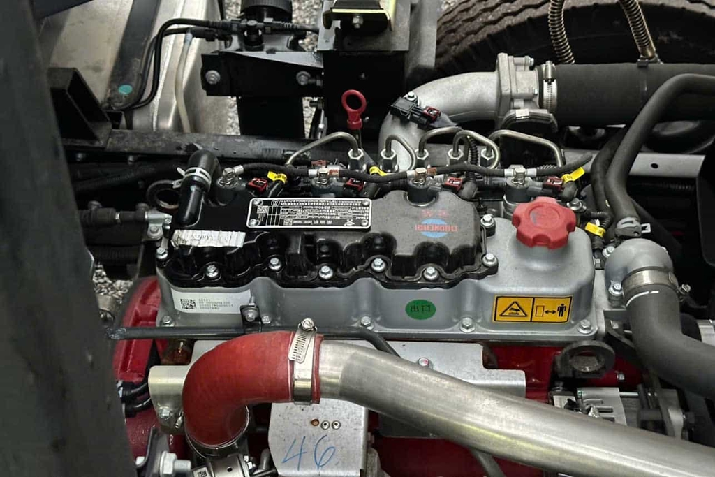 Xe ben TMT 4.5 tấn Forland FL450D được trang bị khối động cơ 4A2-82C50 mạnh mẽ, cấu hình 4 kỳ, 4 xi lanh thẳng hàng, kết hợp cùng turbo tăng áp giúp tăng cường hiệu suất hoạt động. Với dung tích xi lanh 2.270 cm3, động cơ sản sinh ra công suất cực đại 60 kW tại 3200 vòng/phút. Nhờ những thông số ấn tượng này, xe ben TMT 4.5 tấn đảm bảo khả năng kéo tải khỏe và vượt dốc tốt, giữ vững vận hành ổn định ngay cả khi tài xế cần chở quá tải trong điều kiện công trường khắt khe.