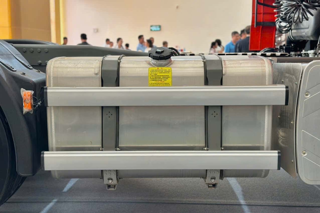 Về khả năng dự trữ nhiên liệu, xe được trang bị hệ thống bình dầu kép đối xứng hai bên với dung tích 550 lít mỗi bình, nâng tổng dung tích lên tới 1.100 lít. Thiết kế này không chỉ đảm bảo sự cân bằng trọng tâm cho toàn bộ thân xe mà còn đặc biệt phù hợp cho những hành trình vận tải đường dài xuyên suốt. Với trữ lượng nhiên liệu cực lớn, người lái có thể yên tâm vận hành trên những cung đường dài mà không cần dừng lại tiếp nhiên liệu nhiều lần.