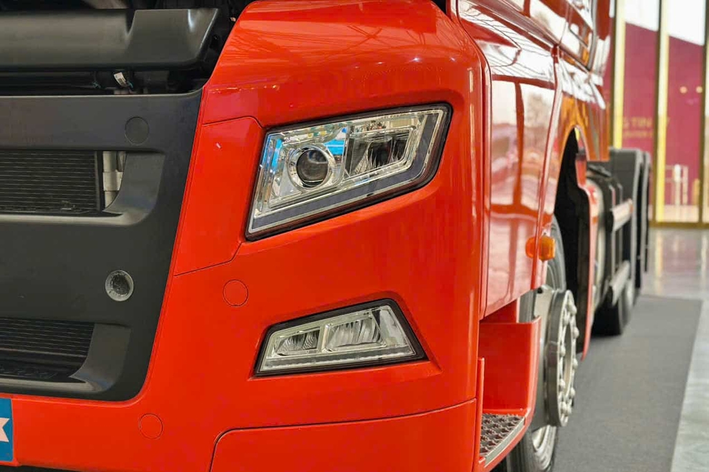 Xe đầu kéo Sitrak G7S 540 sử dụng công nghệ đèn Xenon kết hợp dải đèn LED nhận diện ban ngày, mang lại cường độ sáng vượt trội với dải sáng rộng. Thiết kế chia tầng độc đáo không chỉ tạo ấn tượng về thị giác mà còn tối ưu hóa khả năng hội tụ ánh sáng, giảm chói cho phương tiện đối diện nhưng vẫn đảm bảo tầm nhìn không giới hạn.