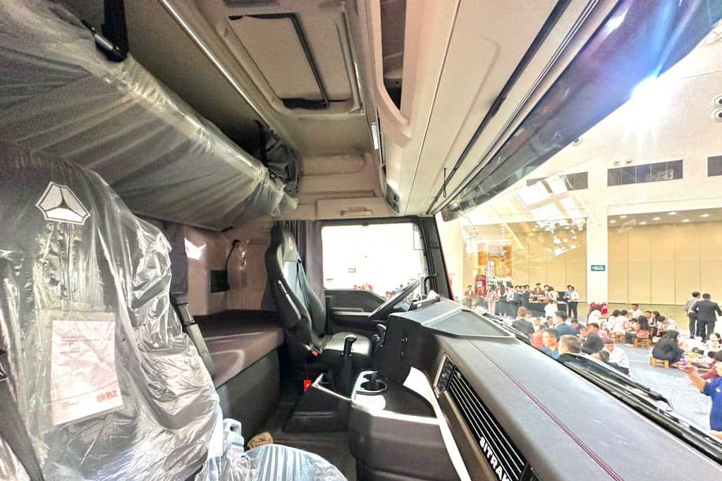 Nếu ngoại thất gây ấn tượng bởi sự hầm hố, thì bước vào bên trong xe đầu kéo Sinotruk G7S 540, bạn sẽ thực sự ngỡ ngàng trước một không gian rộng rãi và tiện nghi không kém gì những chiếc xe hơi hạng sang. Hệ thống ghế ngồi tích hợp bằng hơi êm ái, có khả năng điều chỉnh đa hướng, giúp nâng đỡ cột sống và chống mỏi lưng tuyệt đối cho tài xế khi phải cầm lái liên tục nhiều giờ.